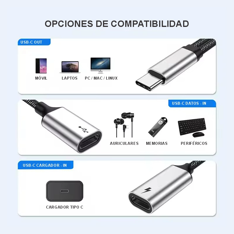 Doble Funcionalidad USB-C: Convierte un único puerto USB-C en dos puertos hembra operativos.